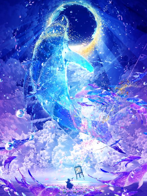 コロナ禍で閉ざしていた感情から解放感ある絵を描きたいと思った事が切っ掛けです。その為青空や見上げている表現をしています。